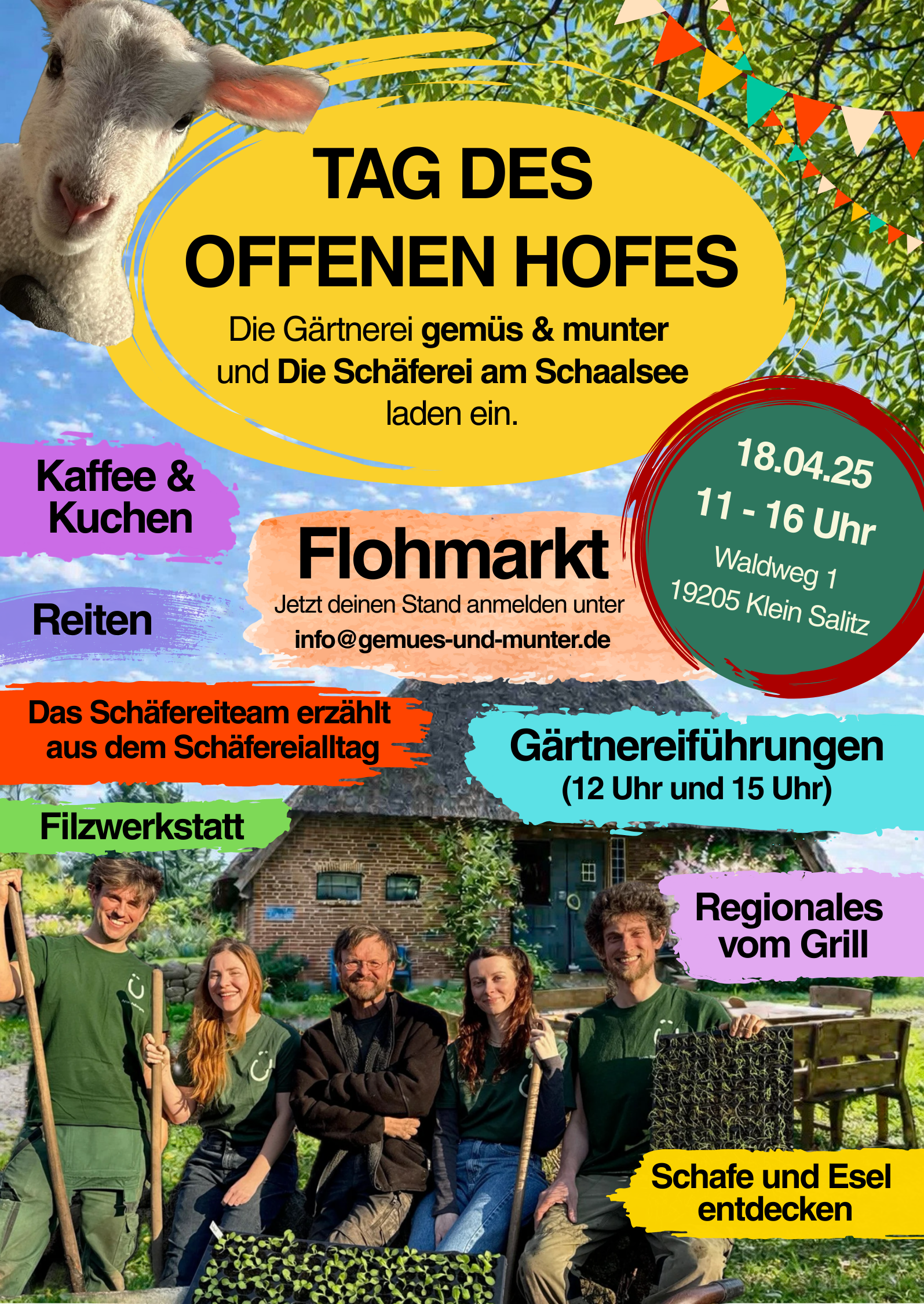 Am 18.04.25 von 11–16 Uhr öffnen wir gemeinsam mit der Schäferei am Schaalsee unsere Tore in Klein Salitz.